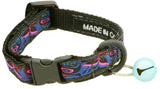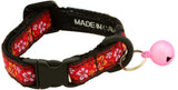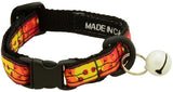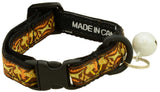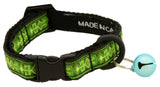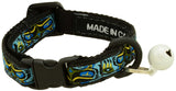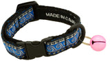 This is a 1/2" Breakaway Cat Collar with a very soft feel and brilliant designs. A strong D-Ring and high quality medium tension breakaway collar, so it won't come off without a reason, but it will definitely come off if needs be. It fits necks 7-11" / 18-28cm.