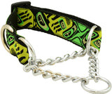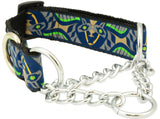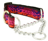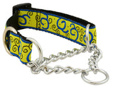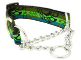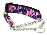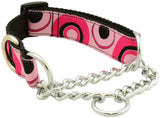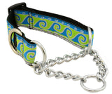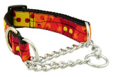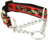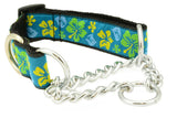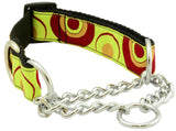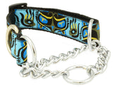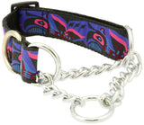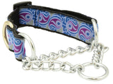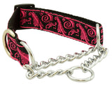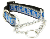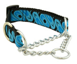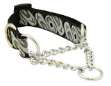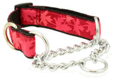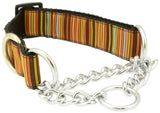 Brilliant Braided Webbing Collars with a Very Soft Hand Feel with Stainless Steel Chains and Stainless D-Rings for peace of mind. The extra width suits many larger dogs with strong frames, or pronounced longer necks. It fits necks 17-24" / 43-61cm.