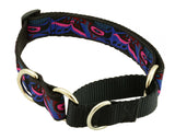 Brilliant Braided Webbing Collars with a Very Soft Hand Feel featuring a Gentle Webbing Restraint and Stainless D-Rings for peace of mind. The extra width just looks right on an XLarge dog. Fits necks 20-28" / 58-71cm.