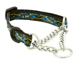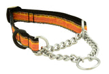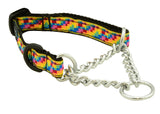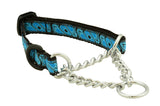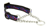 Brilliant Braided Webbing Collars with a Very Soft Hand Feel featuring German Herm-Sprenger Chains and Stainless D-Rings for peace of mind. This is the classic width for most XSmall dogs. It fits necks 7-11" / 18-28cm.