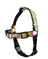 Try this Brilliant Braided 1" webbing multi-point adjustable Front Lead Harness with a very soft hand feel featuring Premium hardware . The leash connects to the metal ring on the chest of the dog and once adjusted correctly allows you more control from tugging and pulling. Fits 26-42" / 66-107cm Girth.