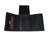 Back by popular demand, we have started offering this version of our trifold wallet again. The features include dual slots for bills including 1 zipper slot, 3 credit card slots, 1 clear ID window slot underneath a flip up card holder and 1 side hidden pocket with zipper.